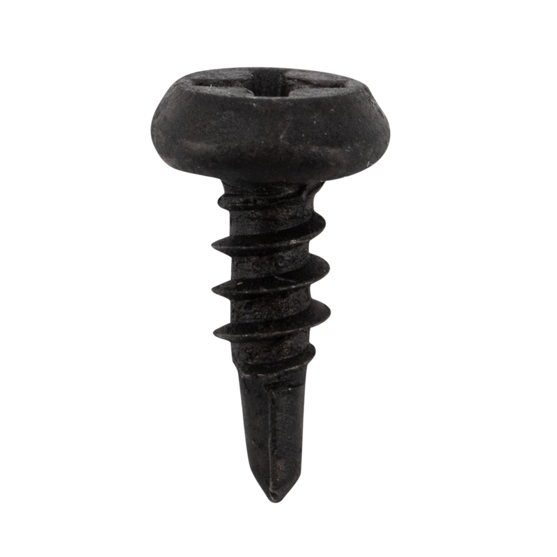 Саморезы изготовлены из стали и обработаны методом фосфатирования, что делает их устойчивыми к коррозии и механическим повреждениям. Полуцилиндрическая головка лучше распределяет нагрузку на материал, снижая риск повреждения тонких металлических элементов, тем самым обеспечивает надежное крепление. Наконечник-сверло легко проходит металл толщиной до 2 мм без предварительного сверления. Резьба с частым шагом обеспечивает надежное крепление самореза в металлическом профиле.