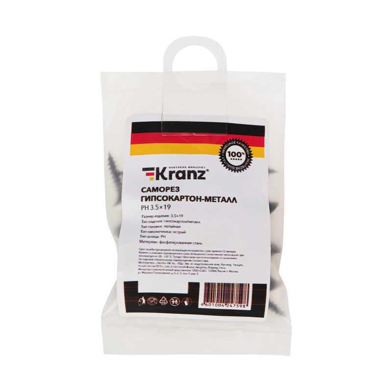 Саморезы изготовлены из стали и обработаны методом фосфатирования, что делает их устойчивыми к коррозии и механическим повреждениям. Потайная головка полностью погружается в материал, оставляя поверхность заготовки ровной и гладкой. Резьба с частым шагом обеспечивает надежное крепление самореза в тонколистовом металле. Не рекомендуется использование совместно с пластиковыми дюбелями.