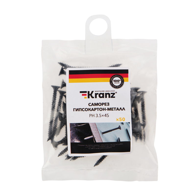 Саморез 3,5х45 мм со шлицем типа PH предназначен для крепления гипсокартонных листов к металлическому профилю.