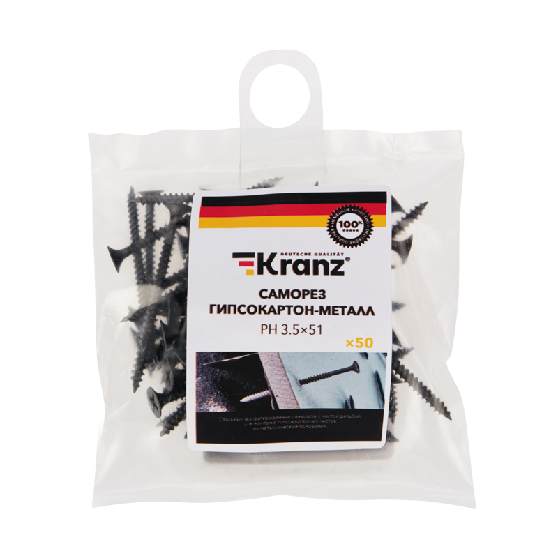 Саморез 3,5х51 мм со шлицем типа PH предназначен для крепления гипсокартонных листов к металлическому профилю.