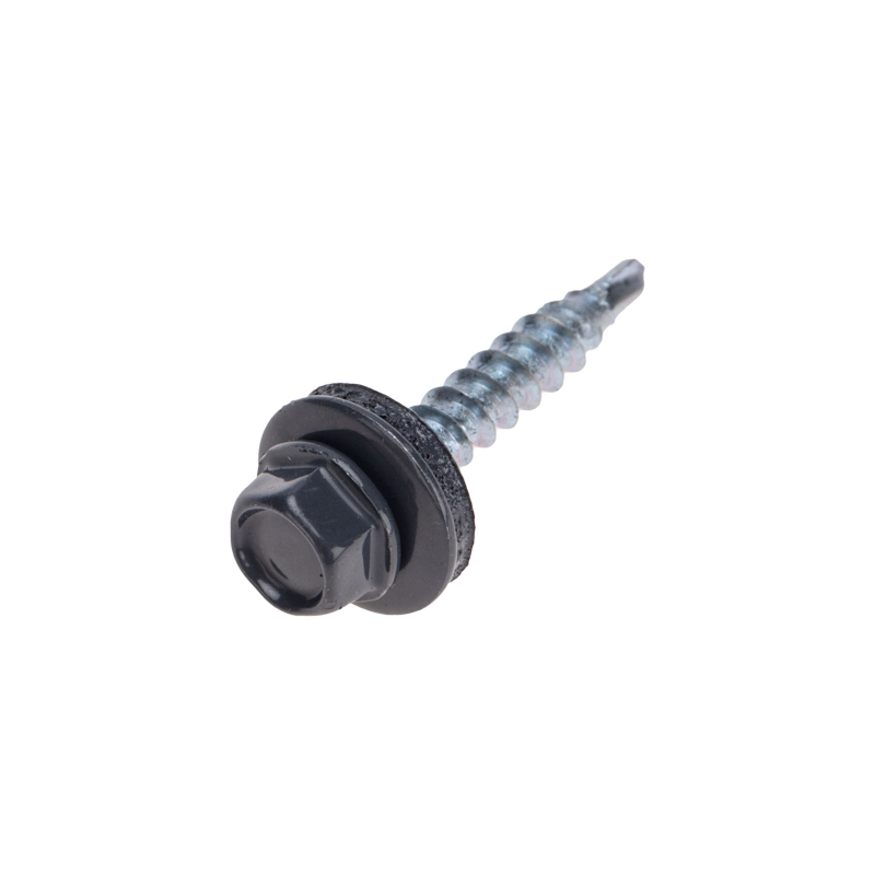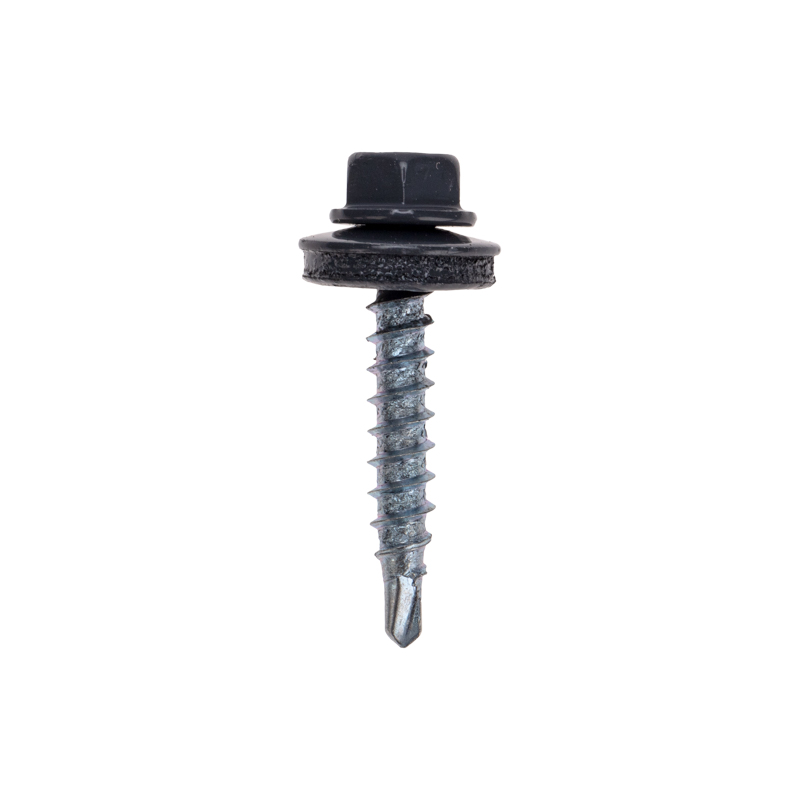 Саморезы изготовлены из стали и покрыты цинком, что делает их устойчивыми к коррозии и механическим повреждениям, что особенно важно при эксплуатации на крыше, где материал подвергается воздействию атмосферных факторов. EPDM-уплотнитель на шляпке обеспечивает плотное и герметичное соединение элементов кровли. Наконечник-сверло легко проникает в материал толщиной до 5 мм без предварительного сверления, что упрощает процесс монтажа. Шестигранная головка самореза покрыта порошковой краской RAL 7024, благодаря чему подобрать саморез под цвет крыши становится проще.