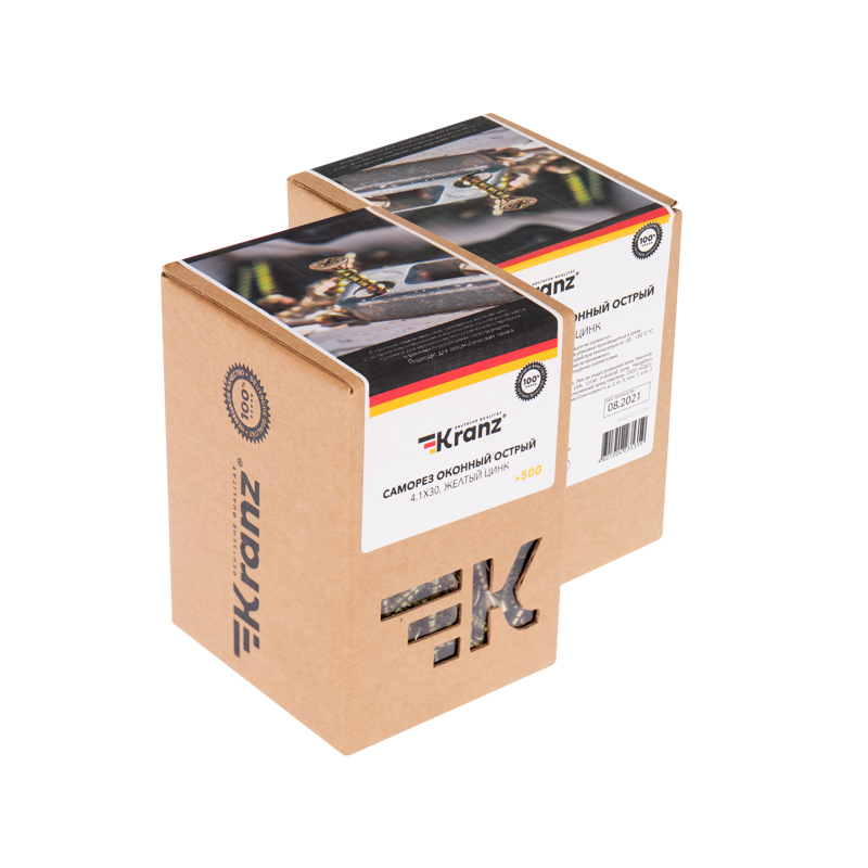 Саморез оконный острый 4,1х30мм, желтый цинк, короб (500 шт/уп) KRANZ