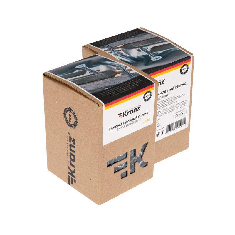 Саморез оконный сверло 3,9х32мм, белый цинк, короб (500 шт/уп) KRANZ