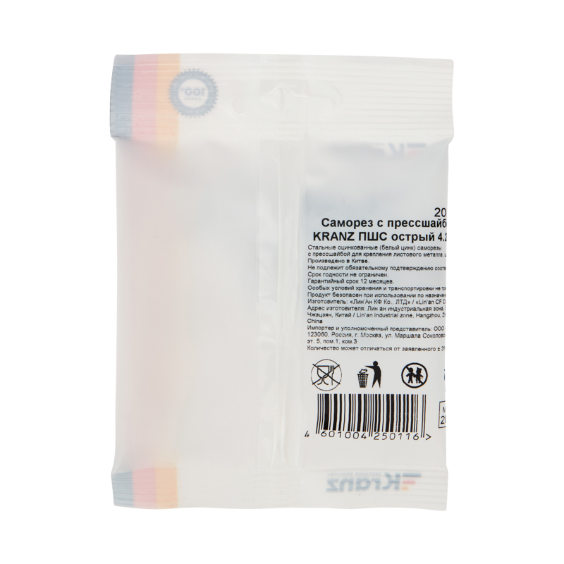 Саморезы изготовлены из стали и покрыты белым цинком, что делает их устойчивыми к коррозии и механическим повреждениям. Полусферическая головка с прессшайбой имеет большую плоскую поверхность, которая равномерно распределяет нагрузку на материал и надежно удерживает тонкие металлические элементы.