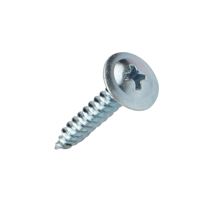 Саморезы изготовлены из стали и покрыты белым цинком, что делает их устойчивыми к коррозии и механическим повреждениям. Полусферическая головка с прессшайбой имеет большую плоскую поверхность, которая равномерно распределяет нагрузку на материал и надежно удерживает тонкие металлические элементы.