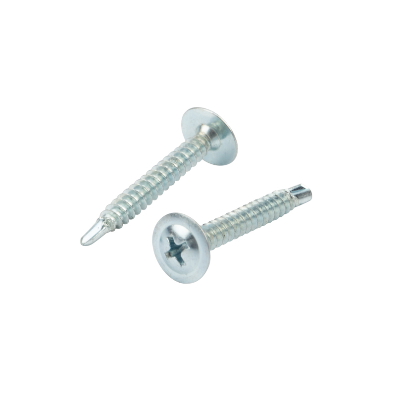 Саморезы изготовлены из стали и покрыты белым цинком, что делает их устойчивыми к коррозии и механическим повреждениям. Полусферическая головка с прессшайбой имеет большую плоскую поверхность, которая равномерно распределяет нагрузку на материал и надежно удерживает тонкие металлические элементы. Наконечник-сверло легко проходит тонкий металл толщиной до 2 мм без предварительного сверления.