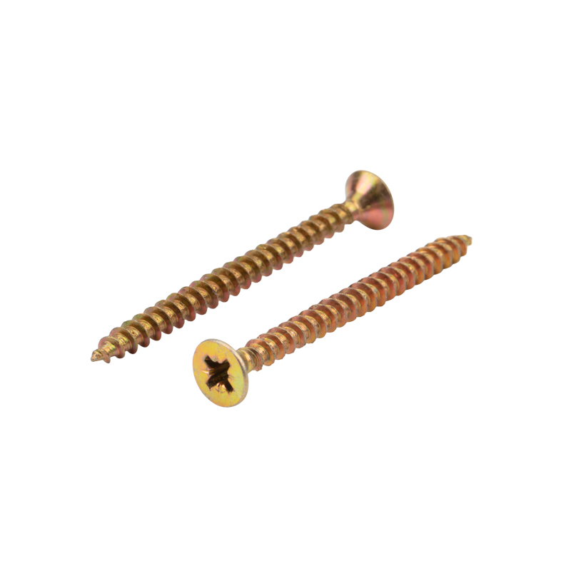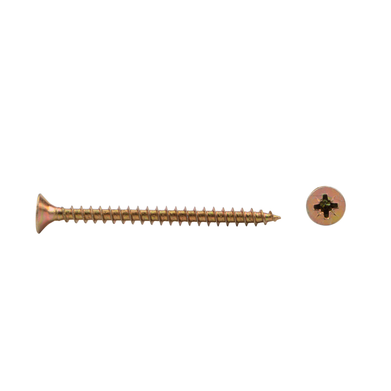 Саморезы изготовлены из стали и обработаны методом желтопассирования, благодаря чему надежно защищены от коррозии и механических повреждений. Потайная головка полностью погружается в материал и не выступает над его поверхностью, оставляя ее гладкой и ровной.