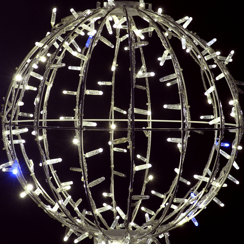 Диаметр шара 50 см. Теплое белое свечение 200 светодиодов с эффектом мерцания каждого пятого диода создает атмосферу праздника.