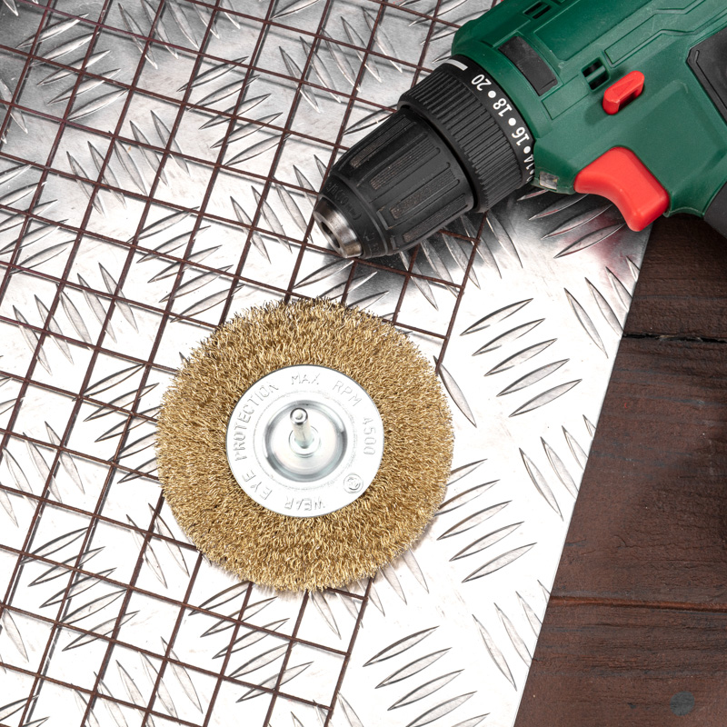 Щетка оснащена цилиндрическим хвостовиком, который позволяет легко устанавливать ее на большинство электрических дрелей.