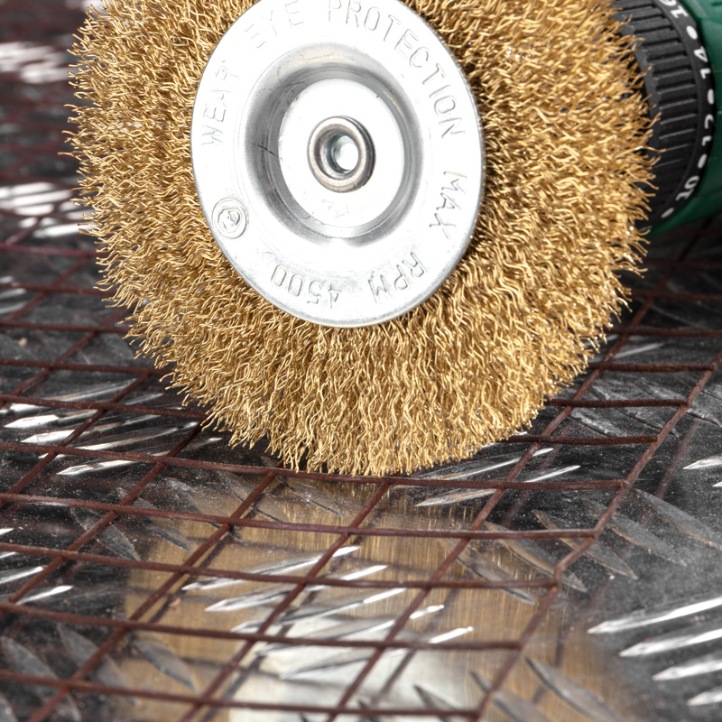 Витая щетина из латунированной проволоки оптимально подходит для аккуратной обработки и шлифовки, позволяет удалить тонкий слой материала, а также придать поверхности глянцевый блеск. Латунированная проволока имеет высокую устойчивость к коррозии, а при работе возникает меньше искр.