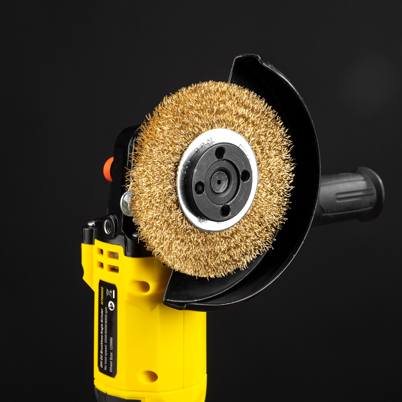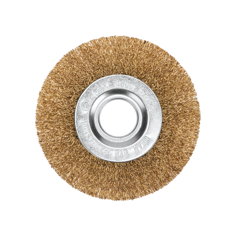 Витая щетина из латунированной проволоки оптимально подходит для аккуратной обработки и шлифовки, позволяет удалить тонкий слой материала, а также придать поверхности глянцевый блеск. Латунированная проволока имеет высокую устойчивость к коррозии, а при работе возникает меньше искр.
