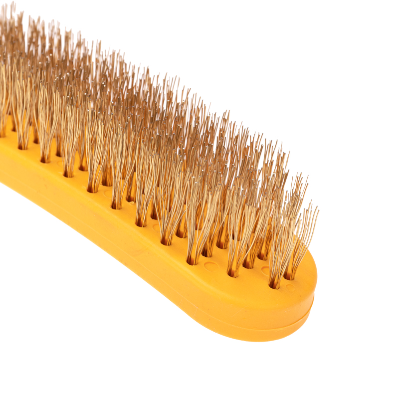 Латунированное покрытие значительно продлевает срок службы щетки. Эргономичная рукоятка, изготовленная из высококачественного пластика, обеспечивает хороший захват и удобство в работе.