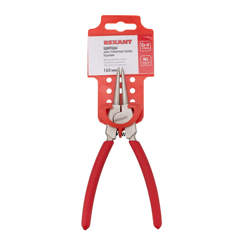 Щипцы с прямым разжимом REXANT предназначены для снятия внутренних стопорных колец и труднодоступных элементов.