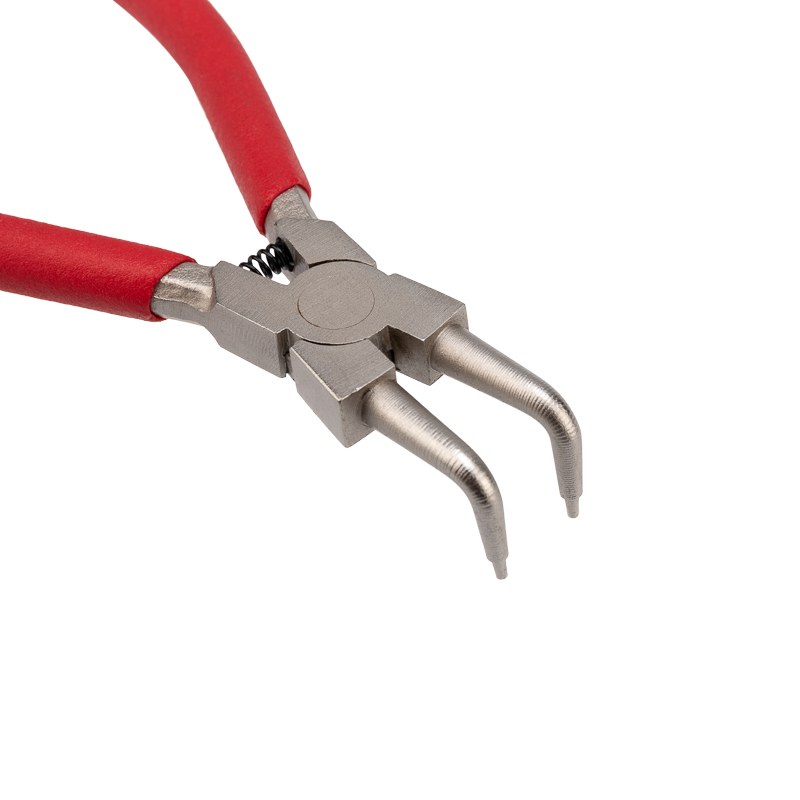 Щипцы с загнутым сжимом REXANT предназначены для монтажа внутренних стопорных колец и труднодоступных элементов.