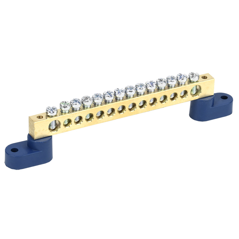 Шина «N» нулевая 8х12мм на двух угловых синих изоляторах 14 групп REXANT