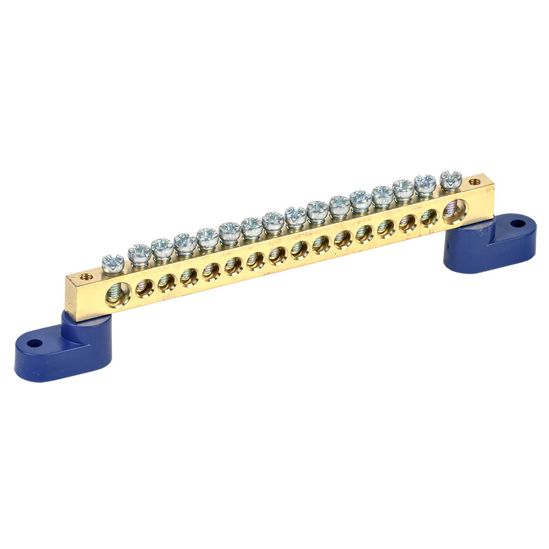 Шина «N» нулевая 8х12мм на двух угловых синих изоляторах 16 групп REXANT