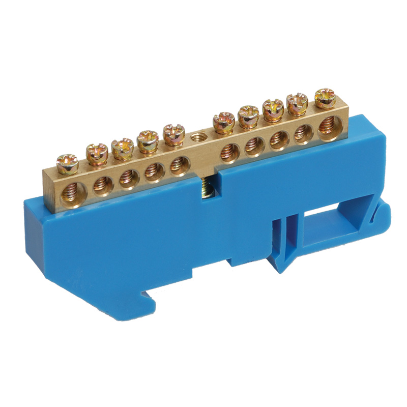 Шина «N» нулевая с синим изолятором на DIN-рейку 6x9мм стойка бол. 10 групп REXANT