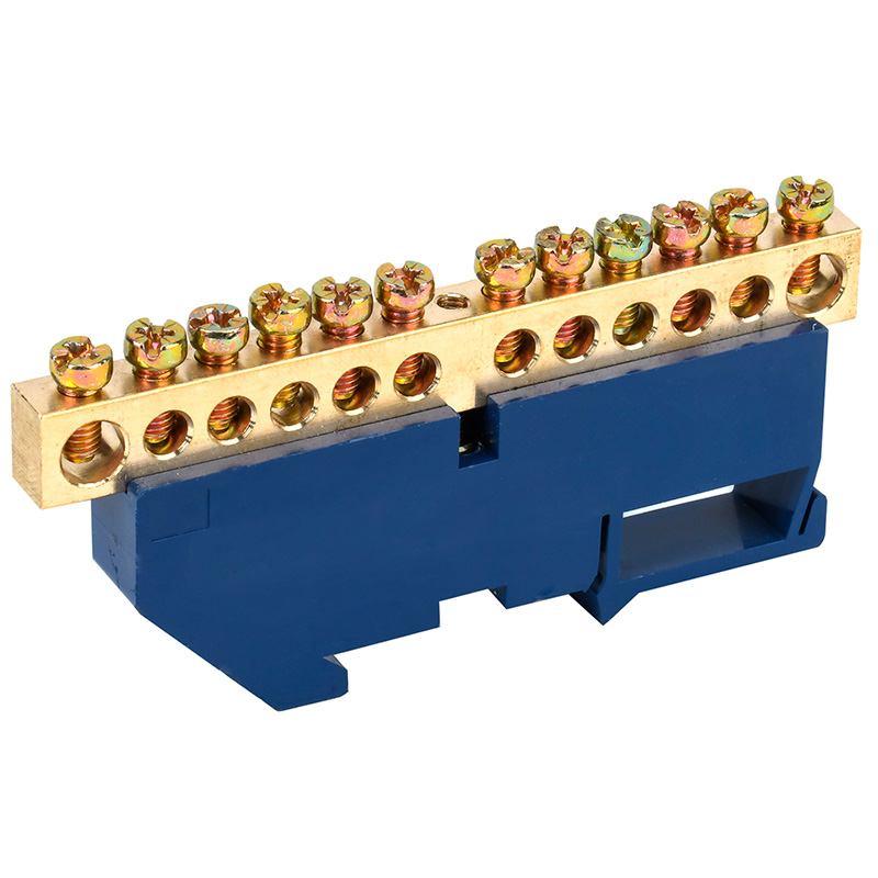 Шина «N» нулевая с синим изолятором на DIN-рейку 8x12мм стойка бол. 12 групп REXANT