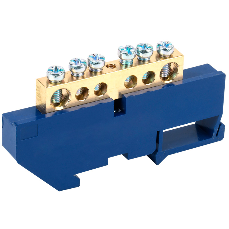 Шина «N» нулевая с синим изолятором на DIN-рейку 8x12мм стойка бол. 6 групп REXANT