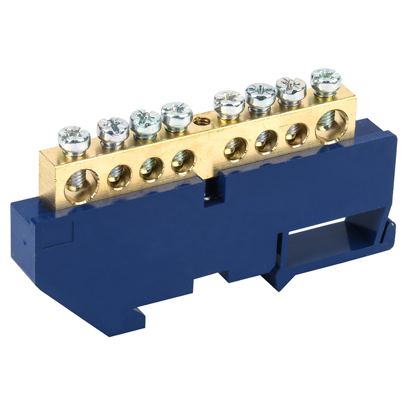 Шина «N» нулевая с синим изолятором на DIN-рейку 8x12мм стойка бол. 8 групп REXANT