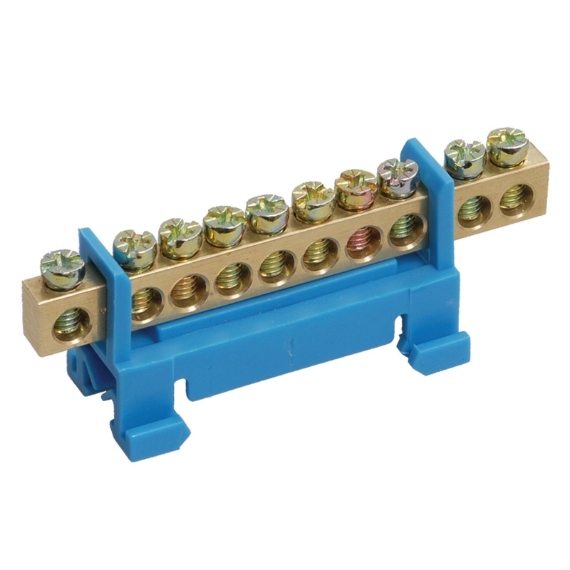 Шина «N» нулевая с синим изолятором тип «Стойка» на DIN-рейку 6x9мм 10 групп REXANT