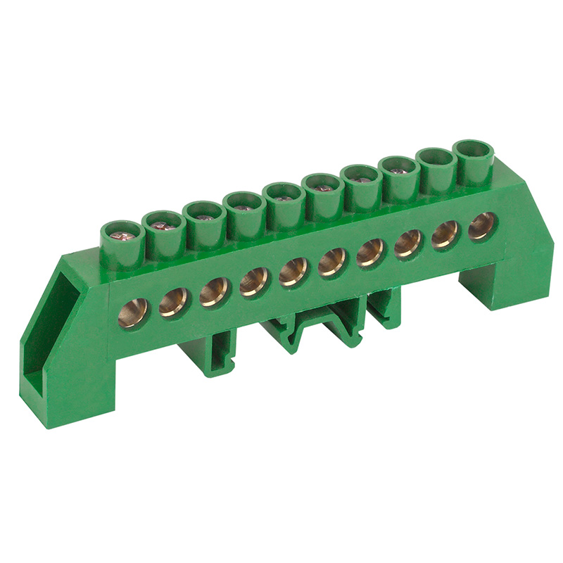 Шина PE «земля» в комбинированном зеленом изоляторе на DIN-рейку 6x9мм 10 групп REXANT