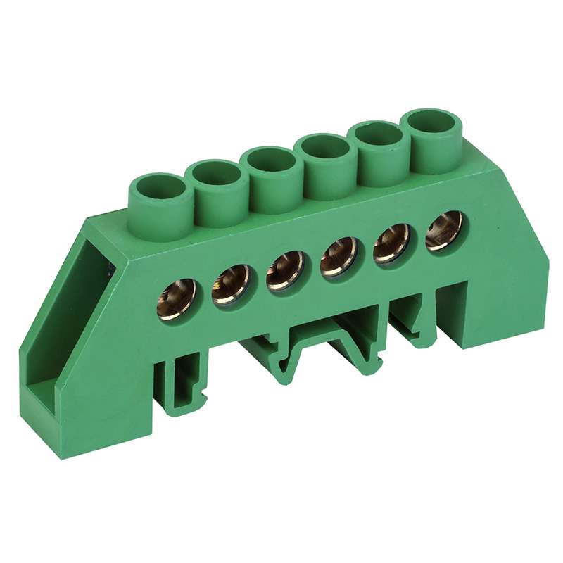 Шина PE «земля» в комбинированном зеленом изоляторе на DIN-рейку 6x9мм 6 групп REXANT