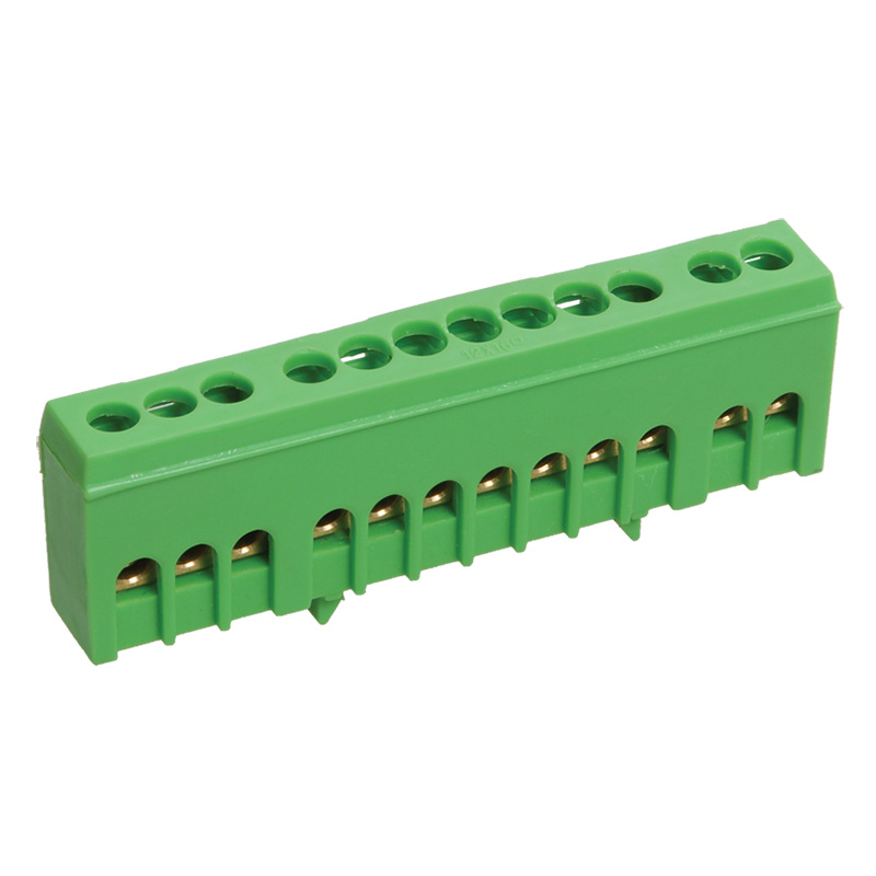 Шина PE «земля» в корпусном зеленом изоляторе на DIN-рейку 6x9мм 12 групп REXANT