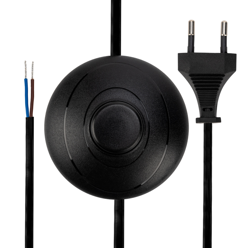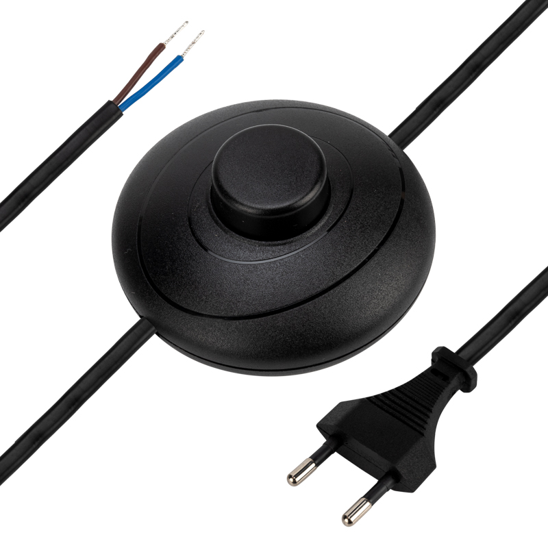 На шнуре предусмотрен напольный выключатель, который позволяет включать и выключать подключенное оборудование. Это готовое решение при производстве светильников.