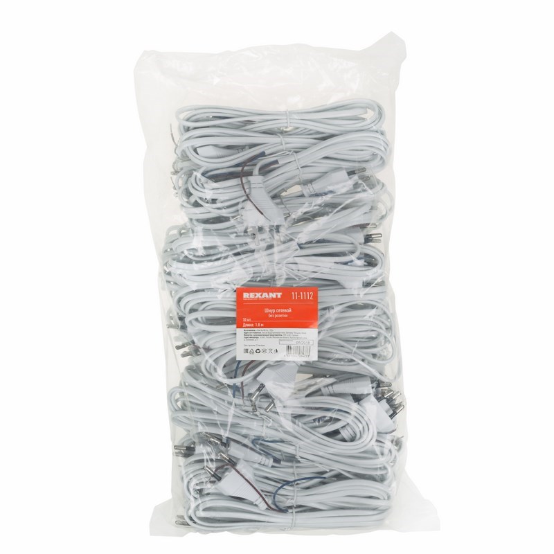Шнур сетевой, вилка плоская без розетки, кабель 2x0,5 мм² 1,8м белый REXANT