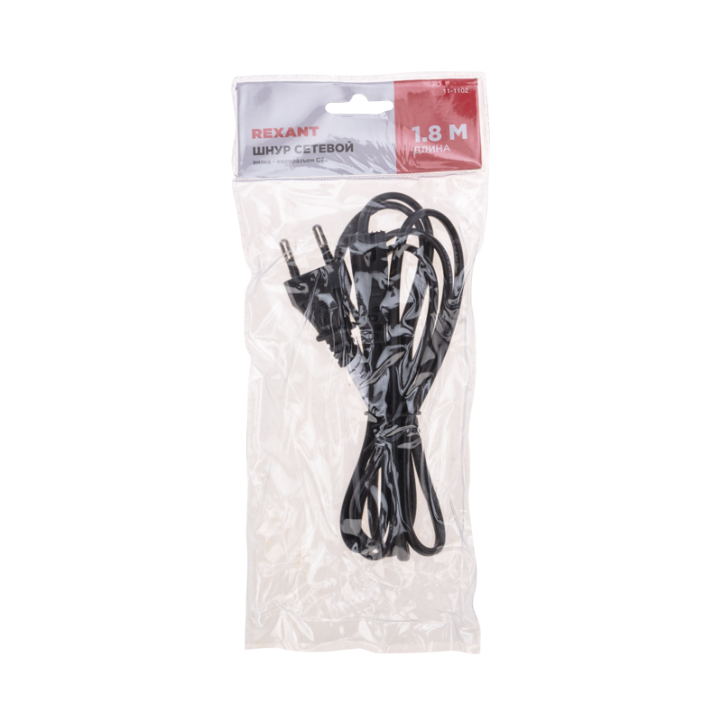 Шнур сетевой СЕЕ 7/16 - IEC 320 C7 1.8 м 2x0.75 мм² REXANT предназначен для подключения к сети переменного тока (AC) с напряжением 220 B аудио- и видеоаппаратуры, источников питания ноутбуков, игровых консолей и других приборов, имеющих штыревой сетевой разъем типа С8 (известен из-за его формы как «восьмерка»). Данный сетевой шнур (IEC cord) оснащен с одной стороны литой неразборной вилкой СЕЕ 7/16, с другой — литым гнездовым неполяризованным разъемом типа IEC 320 C7 и двухжильным проводом с сечением проводника 0.75 мм².