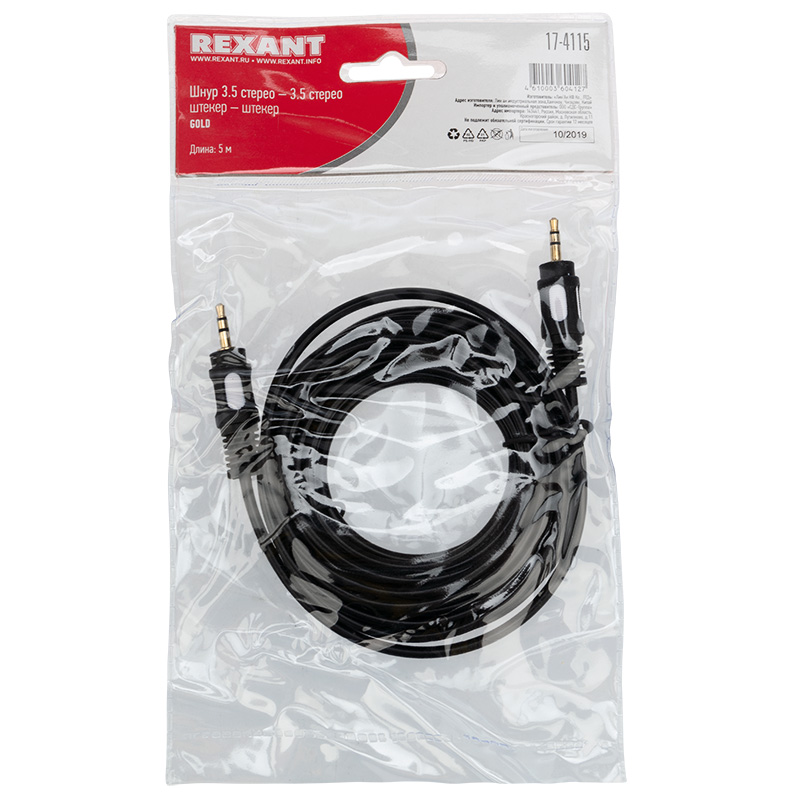 Шнур 3.5 Stereo Plug - 3.5 Stereo Plug 5 м (GOLD) REXANT предназначен для передачи аналогового аудиосигнала и широко применяется в любых акустических системах. С обеих сторон шнура располагаются штекеры разъема 3.5 Stereo.