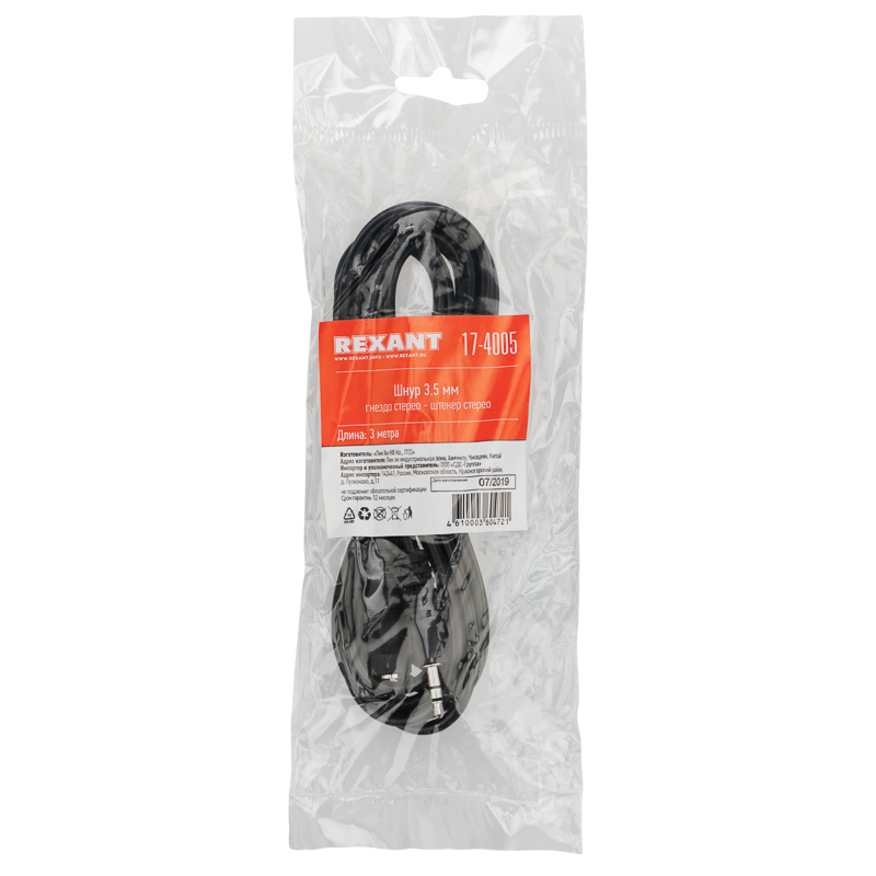 Шнур REXANT предназначен для передачи аналогового аудиосигнала и широко применяется в любых акустических системах. Служит для надежного и качественного соединения домашней и профессиональной аудиоаппаратуры, имеющей разъемы 3,5 мм стерео: микрофоны, электронные музыкальные инструменты, плееры, усилители звука, телевизоры, акустические системы, видеоприставки, мобильные телефоны и т.д. Зачастую используется как аудиоудлинитель.