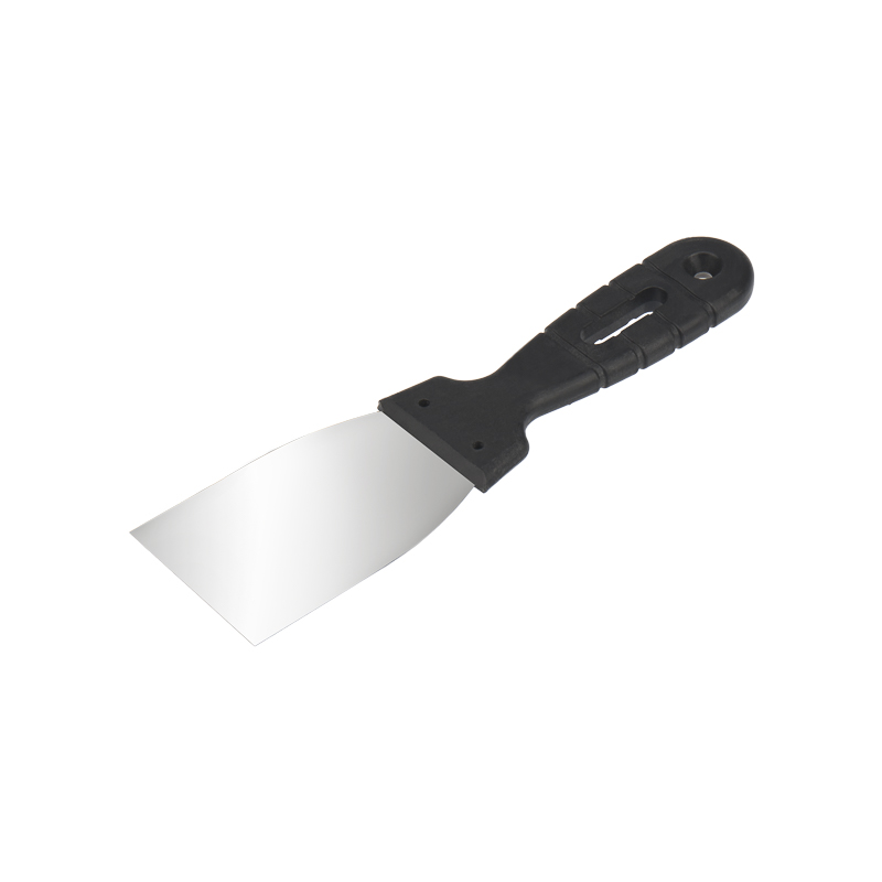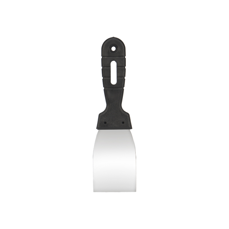 Шпательная лопатка оснащена эргономичной пластиковой ручкой, основной рабочей частью шпателя является металлическое полотно, поэтому для производства шпателей мы используем нержавеющую сталь марки AISI 201 толщиной 0,45 мм высоконагартованную (1500 н/мм). Сталь данной марки обладает улучшенными механическими свойствами, исключающими деформацию полотна в процессе работы.