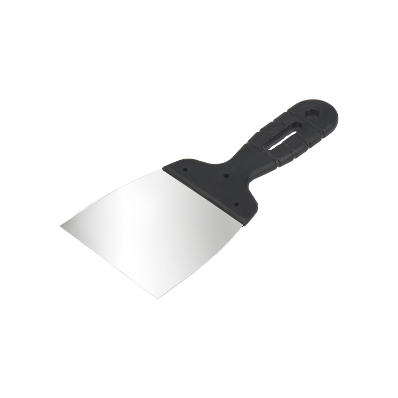 Шпательная лопатка оснащена эргономичной пластиковой ручкой, основной рабочей частью шпателя является металлическое полотно, поэтому для производства шпателей мы используем нержавеющую сталь марки AISI 201 толщиной 0,45 мм высоконагартованную (1500 н/мм). Сталь данной марки обладает улучшенными механическими свойствами, исключающими деформацию полотна в процессе работы.