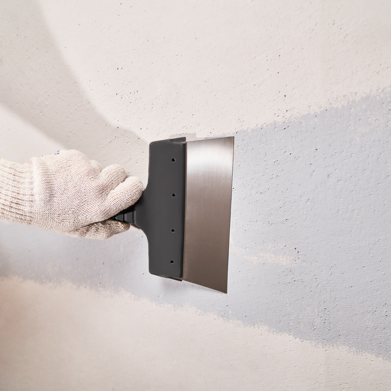 Фасадный шпатель оснащен эргономичной пластмассовой ручкой с рифлением, которая обеспечивает надежный хват инструмента, при использовании, в том числе, в грубых строительных перчатках. Основной рабочей частью шпателя является металлическое полотно, поэтому для производства шпателей мы используем нержавеющую сталь марки AISI 201 толщиной 0,4 мм высоконагартованную (1500 н/мм). Сталь данной марки обладает улучшенными механическими свойствами, исключающими деформацию полотна в процессе работы.