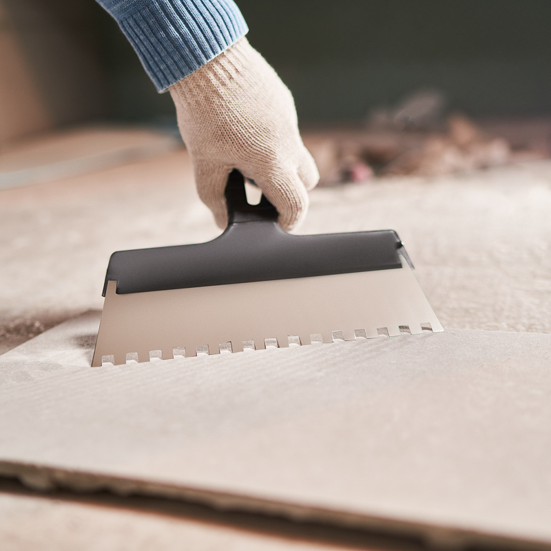 Фасадный шпатель оснащен эргономичной пластмассовой ручкой с рифлением, которая обеспечивает надежный хват инструмента при использовании, в том числе, в грубых строительных перчатках. Основной рабочей частью инструмента является стальное полотно, поэтому для производства шпателей REXANT используется нержавеющая высоконагартованная сталь (1500 н/мм) марки AISI 201 толщиной 0,42 мм. Сталь данной марки обладает улучшенными механическими свойствами, исключающими деформацию полотна в процессе работы.
