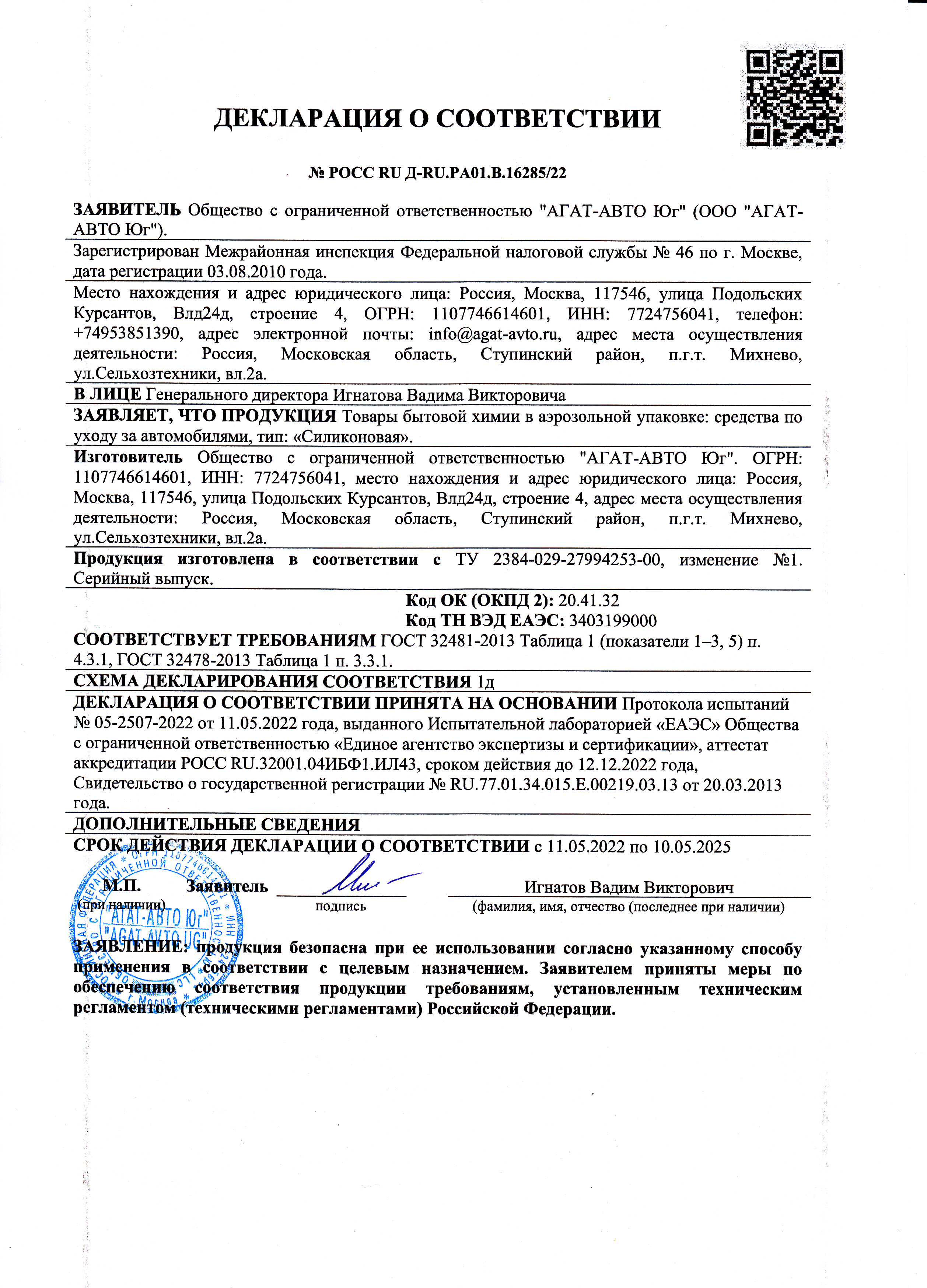 Профессиональная формула смазки содержит концентрированную смесь силиконовых полимеров, которые образуют на поверхности тонкую пленку с высокими смазывающими и водоотталкивающими свойствами в широком интервале температур (от -40 до +170 °С). Смазка способна оставаться на поверхности после многочисленных моек и при частом перепаде температур.