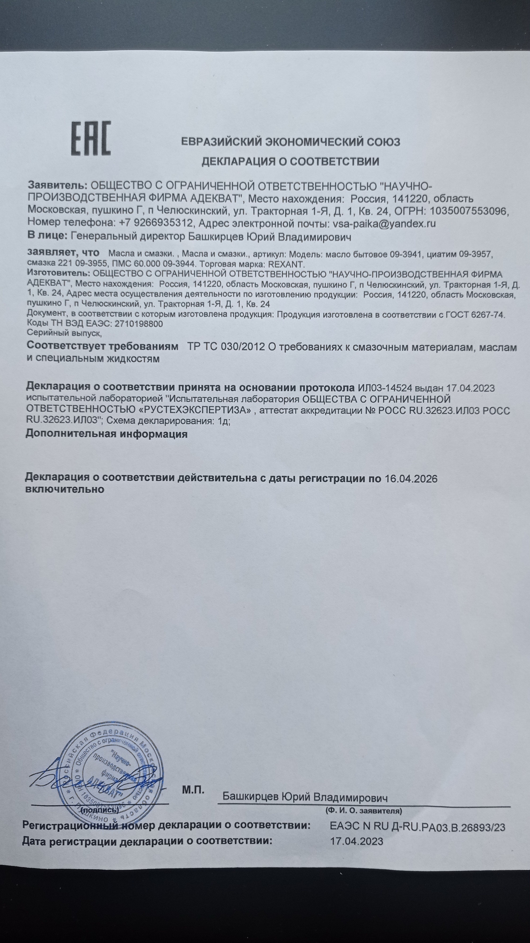 Представляет собой многоцелевую нейтральную смазку высокой вязкости для малонагруженных металлических и полимерных деталей.