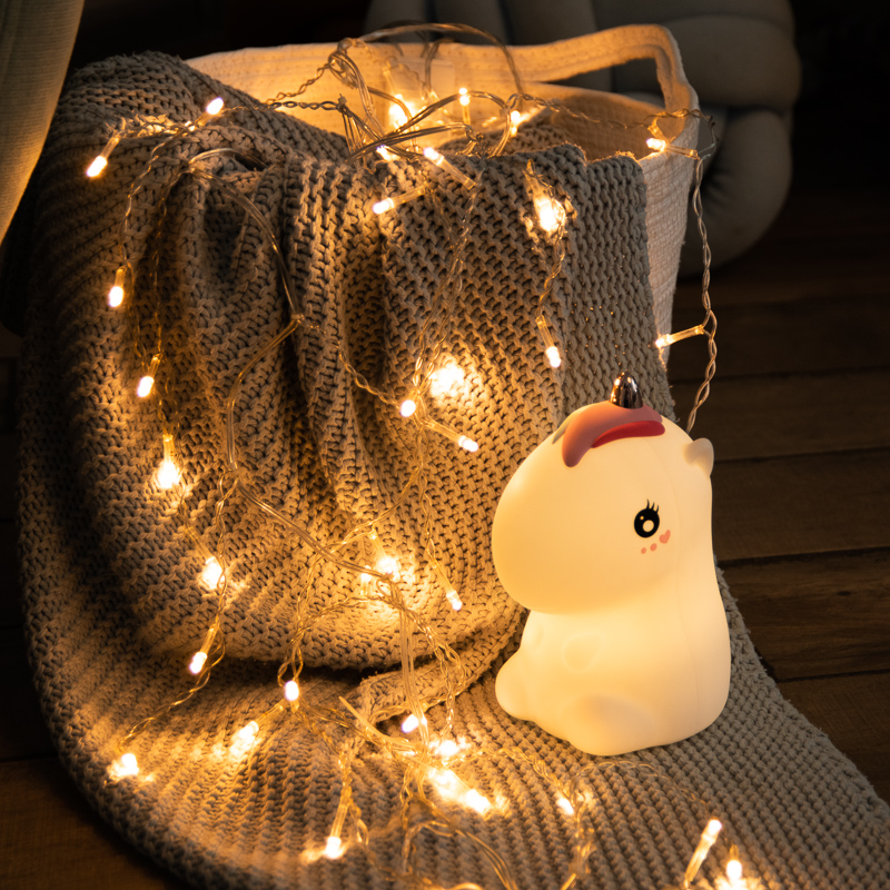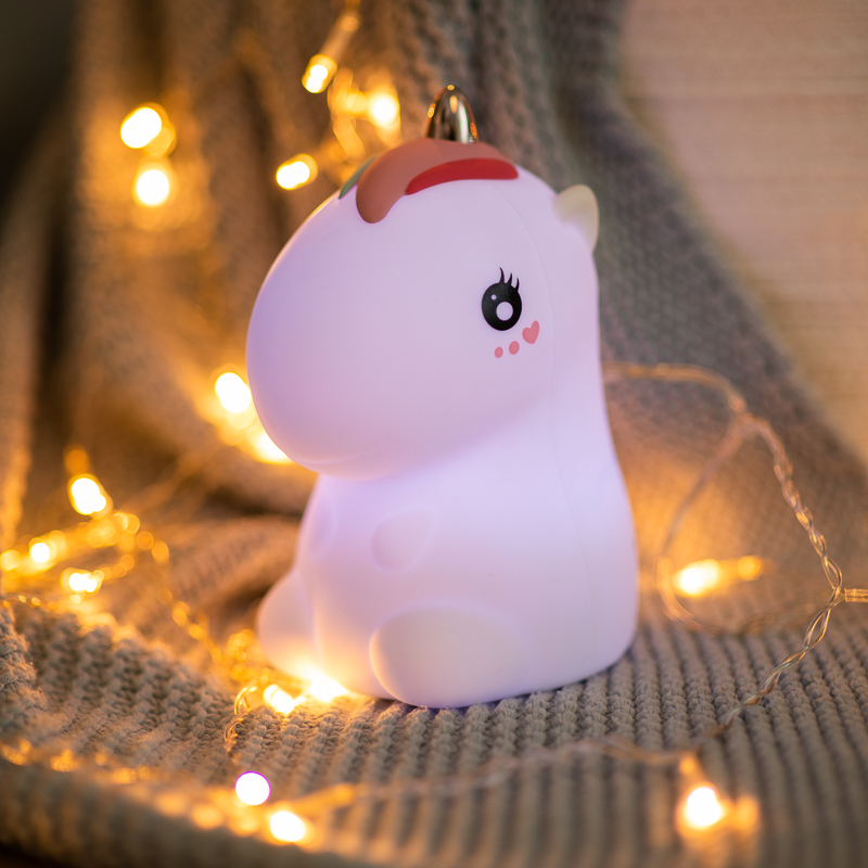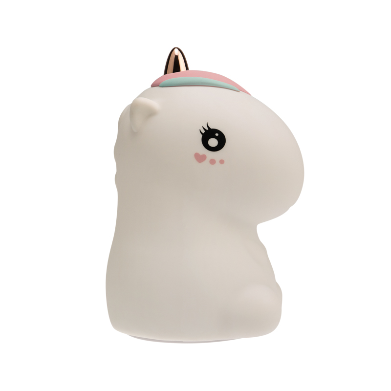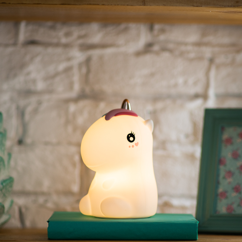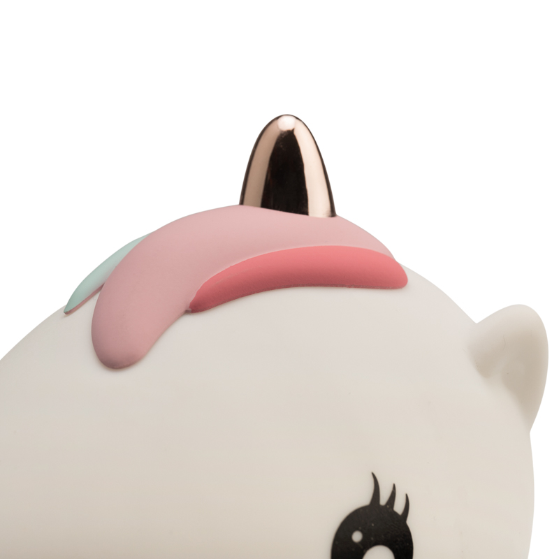 Беспроводной силиконовый ночник NEON-NIGHT «Единорог» не имеет запаха, выполнен из экологически чистых гипоаллергенных материалов. Благодаря технологии Soft-touch светильник приятно держать в руках: может использоваться в качестве игрушки. Ночник рассчитан на 3 режима: постоянное белое свечение теплого оттенка, плавная смена цветов RGB в диапазоне 256 оттенков, свечение одним из цветных вариантов. Смена опции осуществляется легким хлопком по корпусу. Силиконовый ночник заряжается через USB-порт (кабель в комплекте) и работает 9-11 часов от одного заряда. В основании светильника расположена кнопка включения/выключения.
