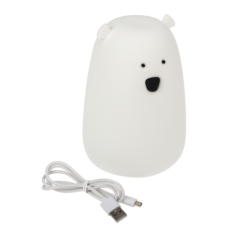 Приятный силиконовый материал и забавный дизайн ночника Медведь не оставят равнодушными ни взрослых, ни детей. Теплое белое свечение поможет малышу комфортно и быстро уснуть, а плавная смена ярких цветов поднимет настроение и преобразит любой интерьер. Смена цвета свечения производится легким хлопком по ночнику, второй хлопок позволит сохранить выбранное свечение. Благодаря материалу и конструкции светильника, его можно ронять, кидать и мять.