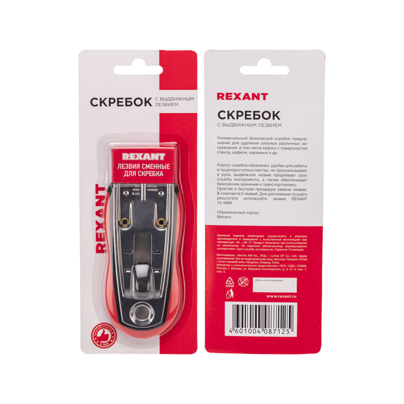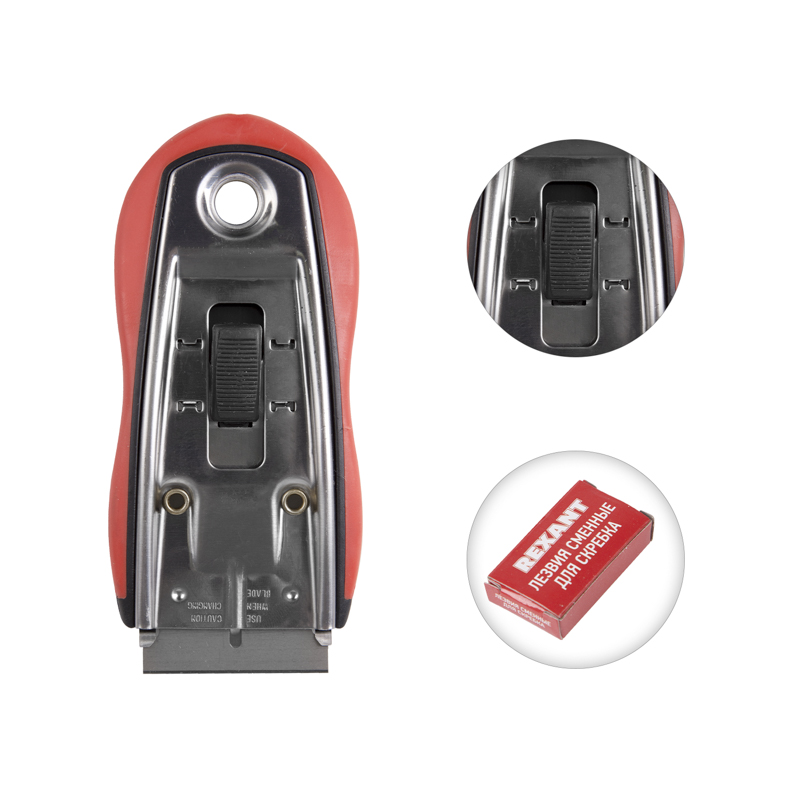 Корпус скребка выполнен с прорезиненными краями, не проскальзывает в руке. Инструмент удобен для работы в труднодоступных местах.