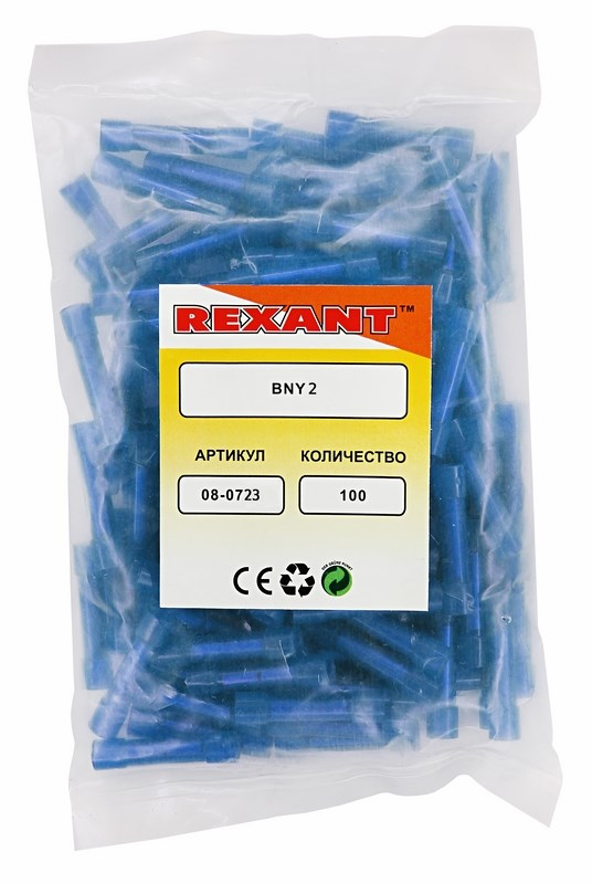 Изолированный соединитель REXANT состоит из двух компонентов: металлической бесшовной трубки и защитного изолятора, закрывающего коннектор полностью. Цельнотянутая металлическая трубка (контактная часть) изготовлена из латуни, с поверхностным электролитическим лужением, имеет посередине ограничительную высечку, для равномерного заведения проводов с обеих сторон. Изолятор гильзы изготовлен из нейлона, надежно защищающий контактную часть от внешних воздействий, а человека от поражения электрическим током. Полупрозрачный корпус позволяет контролировать заход жил. Обжатие производится путем механической деформации специальными пресс-клещами (ht-301 H, ht-301 N, ht-301 W) поверх защитного изолятора. Цвет изолятора синий.