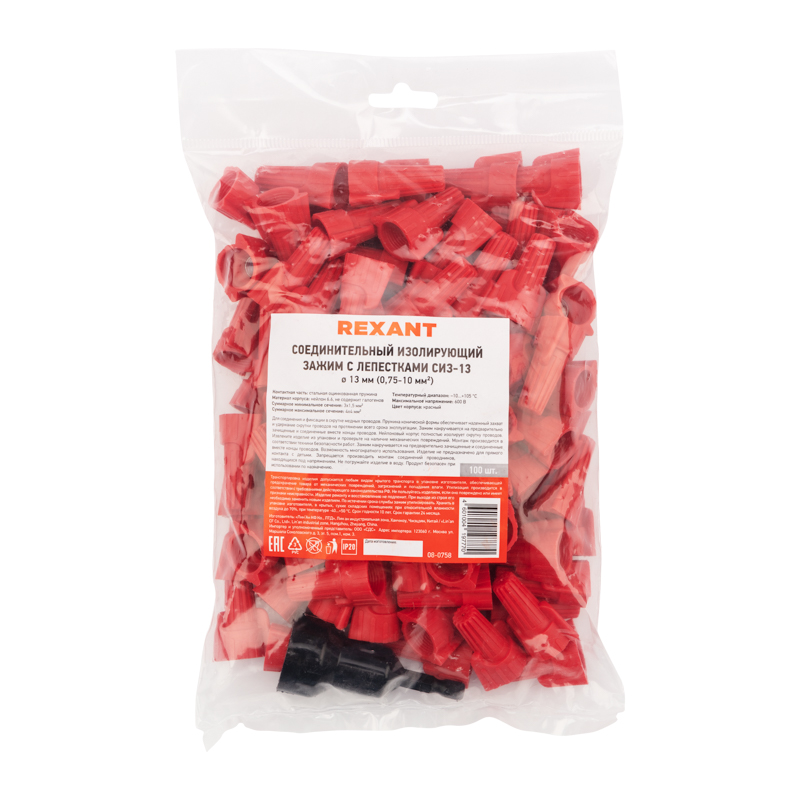 Соединительный изолирующий зажим REXANT предназначен для соединения и фиксации в скрутке медных проводов.