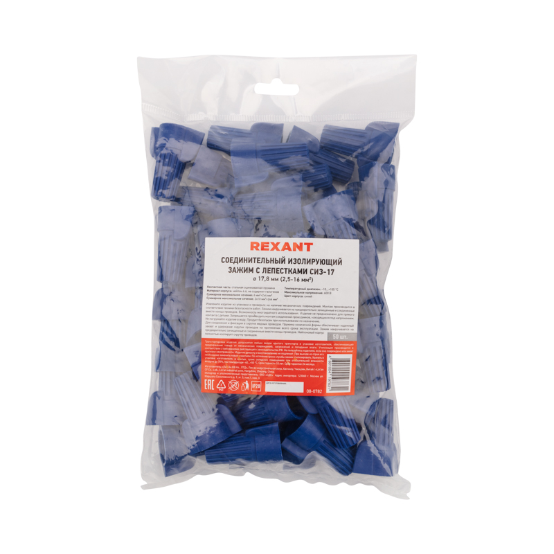 Соединительный изолирующий зажим REXANT с лепестками СИЗ-17 ø 17,8 мм (5-32 мм²), синий (50 шт./уп.)
