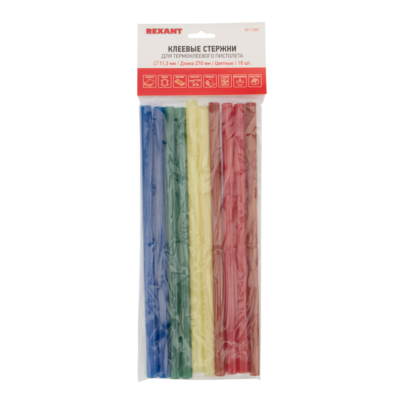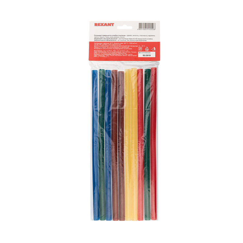 Клеевые стержни используются совместно с клеевыми пистолетами. Предназначены для склеивания поверхностей различных материалов: дерева, металла, пластмассы, керамики, картона, бумаги, ткани, кожи, резины, стекла. Цветные стержни подойдут для декорирования предметов, где нужно, чтобы клей гармонировал по цвету с материалами.