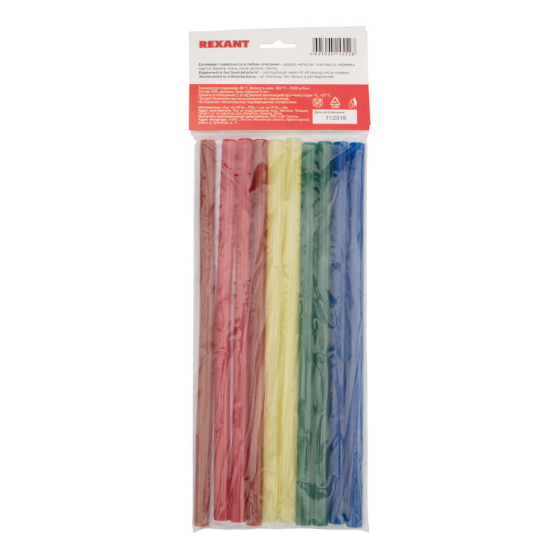 Изготовлены из ЭВА, поэтому полностью экологичны и безопасны при соблюдении правил использования. Обладают высокой скоростью и надежностью склеивания. Время застывания зависит от количества расплавленной массы. Благодаря длине стержней пистолет не придется часто перезаряжать. Используются с клеевыми пистолетами с каналом для стержней соответствующего диаметра. Набора из 10 клеевых стержней хватит для выполнения большого объема работ.