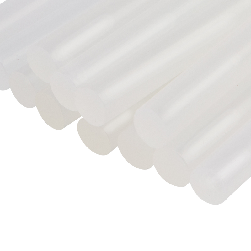 Изготовлены из ЭВА, поэтому полностью экологичны и безопасны при соблюдении правил использования. Обладают высокой скоростью и надежностью склеивания. Время застывания зависит от количества расплавленной массы. Длина стержней составляет 100 мм, набор подойдет для выполнения небольшого объема работ. Используются с клеевыми пистолетами с каналом для стержней соответствующего диаметра. Набор состоит из 12 клеевых стержней.
