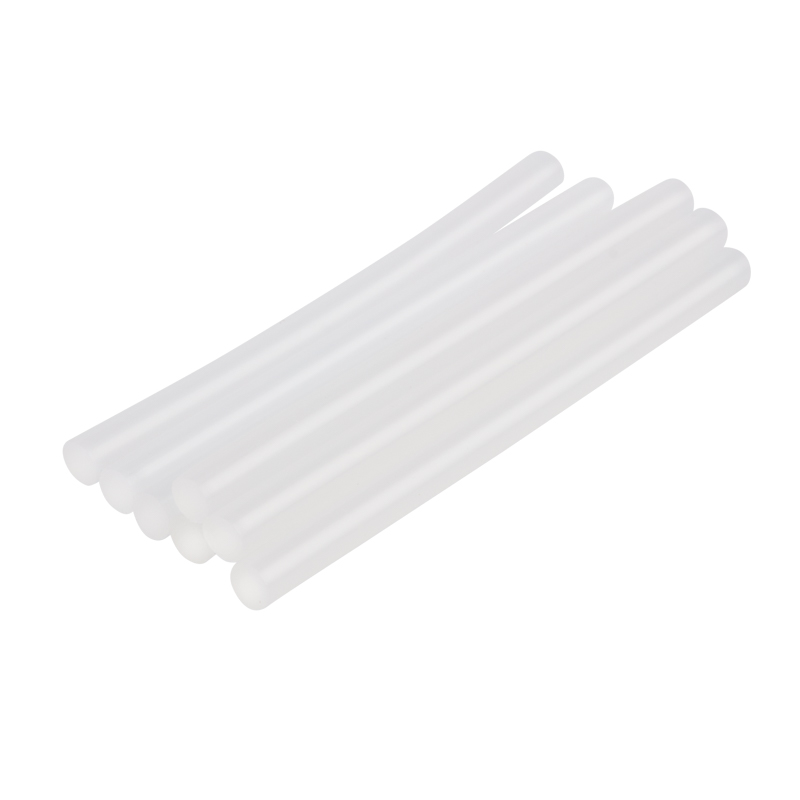 Изготовлены из ЭВА, поэтому полностью экологичны и безопасны при соблюдении правил использования. Обладают высокой скоростью и надежностью склеивания. Время застывания зависит от количества расплавленной массы. Длина стержней составляет 100 мм, набор подойдет для выполнения небольшого объема работ. Используются с клеевыми пистолетами с каналом для стержней соответствующего диаметра. Набор состоит из 6 клеевых стержней.