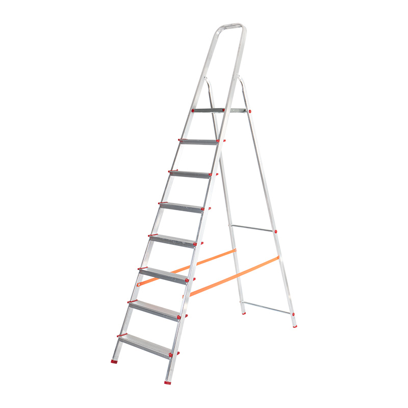 Стремянка алюминиевая состоит из 8 ступенек, применяется как в строительных целях, так и в быту, дома, на даче, в гараже и саду. Специальное соединительное ушко обеспечивает устойчивость конструкции и надежную фиксацию оборудования в рабочем положении. Ножки лестницы изготовлены в пластиковом покрытии; это предотвращает скольжение и защищает напольное покрытие от царапин, а упрочненное крепление ножек предотвращает их выпадение. Специальное покрытие гарантирует устойчивость к коррозии и защищает от негативного воздействия окружающей среды. Стремянка из усиленного профиля с 8 широкими ступенями с противоскользящим рифлением не занимает много места. Использование качественных материалов гарантирует долгий срок службы и позволяет нагружать стремянку массой до 150 кг.